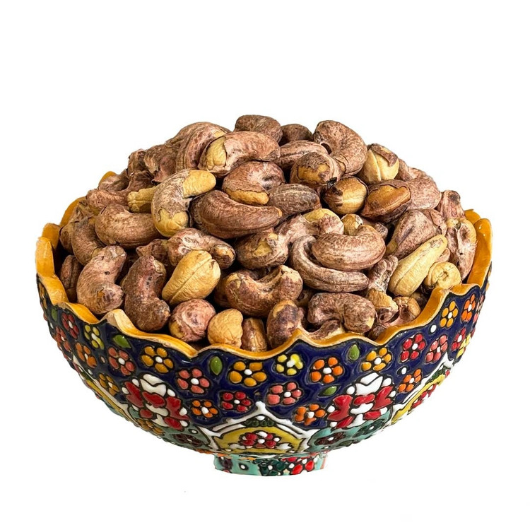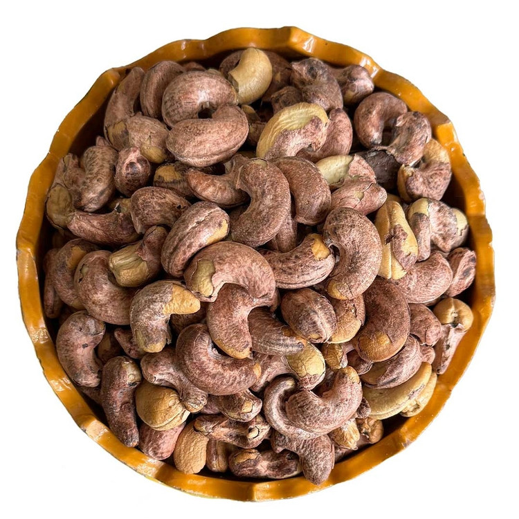 بسیاری از افراد بادام هندی با پوست خرید میکنند و آن را بیشتر ترجیح میدهند. پوست بادام هندی میزان فیبر بیشتری دارد. این موضوع باعث میشود احساس سیرکنندگی زیادی ایجاد کند که برای آن دسته از افرادی که میخواهند لاغر شوند، بسیار مفید است. این پوست حالتی سبوس مانند دارد و باعث درشتتر به نظر رسیدن بادام هندی میشود. بادام هندی باپوست به دلیل اینکه به تازگی در بازار خشکبار کشور عرضه شده است، محصولی نو و
