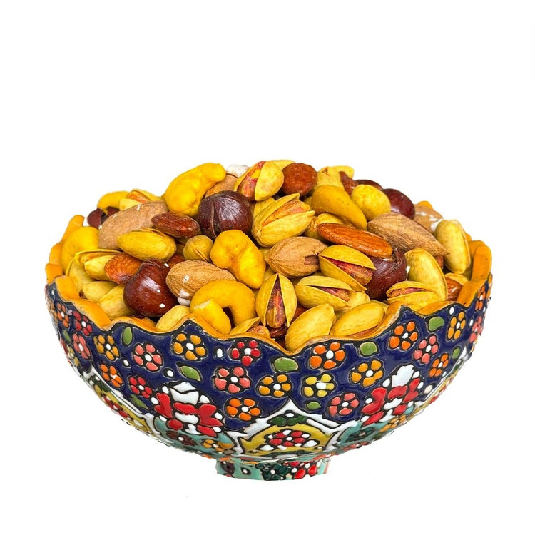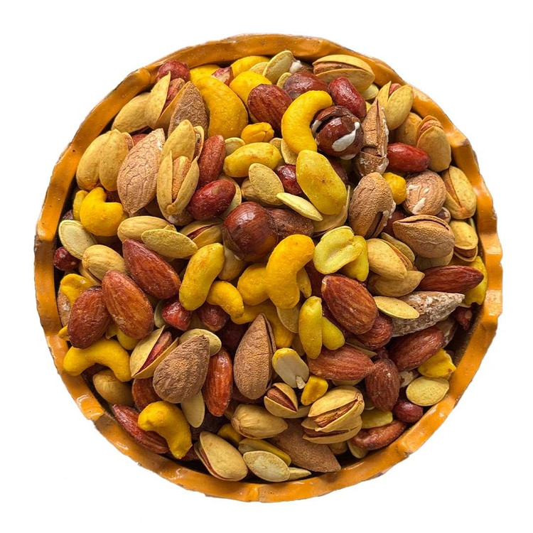 ترکیبات: بادام هندی شور،پسته اکبری شور،مغز بادام درختی شور،فندق شور،بادام کاغذی تک پوست شور (منقا)